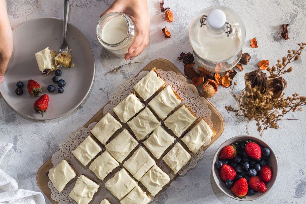 Unlike my kids, I would find myself religiously following Connie’s advice to chill the blondies well. In the meantime, I normally prepare her ultimate white chocolate cream cheese frosting to top those pretty rosy blondies. Honestly, I sometimes give this recipe a tweak here and there just to have some variations. The result would still be awesome.